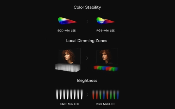 Технология SQD-Mini LED (Super Quantum Dot Mini LED) использует одночиповый источник чистого белого света в сочетании с усовершенствованными квантовыми точками. В отличие от RGB-Mini LED, где для создания белого света комбинируются красные, зеленые и синие светодиоды, новая разработка TCL обеспечивает 100%-ное покрытие цветового пространства BT.2020.