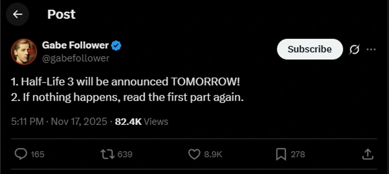 Valve готовится к громкому анонсу: Half-Life 3 может быть представлена уже сегодня 18 ноября 2025 года